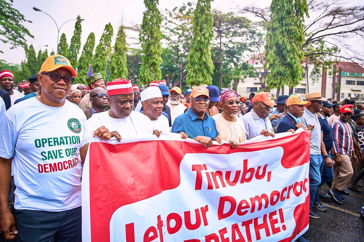 The protest drew the full weight of the party’s leadership, including Mark; National Secretary, Ogbeni Rauf Aregbesola; former Vice President Atiku Abubakar; former Minister of Transportation, Chibuike Amaechi; 2023 presidential candidate of Labour Party (LP), Peter Obi; and leader of Kwankwasiya Movement, Rabiu Musa Kwankwaso,.